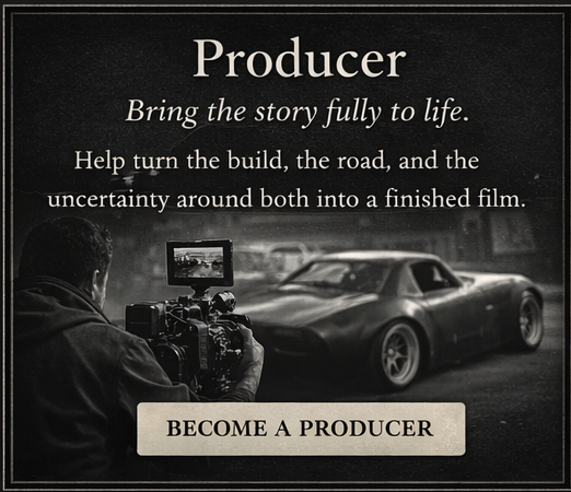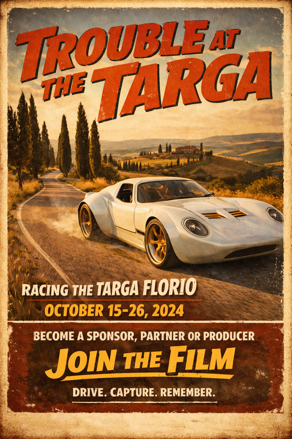You are backing the full journey of Trouble at the Targa: the continued build of The Banshee, the road to Sicily, and the film taking shape around both. The car and the destination are the visible form of a deeper story about taking one’s own road seriously and living it consciously.
