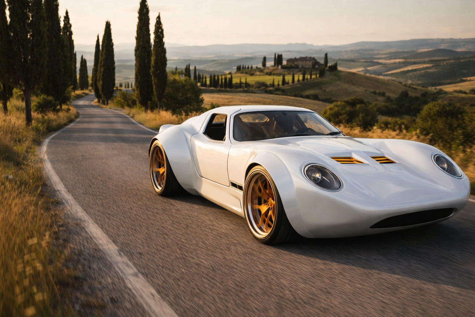 We are not in the official race. We are the American echo. A California built Vintage Supercar with a big V8 voice, slipping through the same hill towns and countryside stages as the classics. Picture small displacement elegance and chrome detail, then imagine the moment our car arrives with a deeper note, a wider stance, and a kind of confidence that feels handmade.